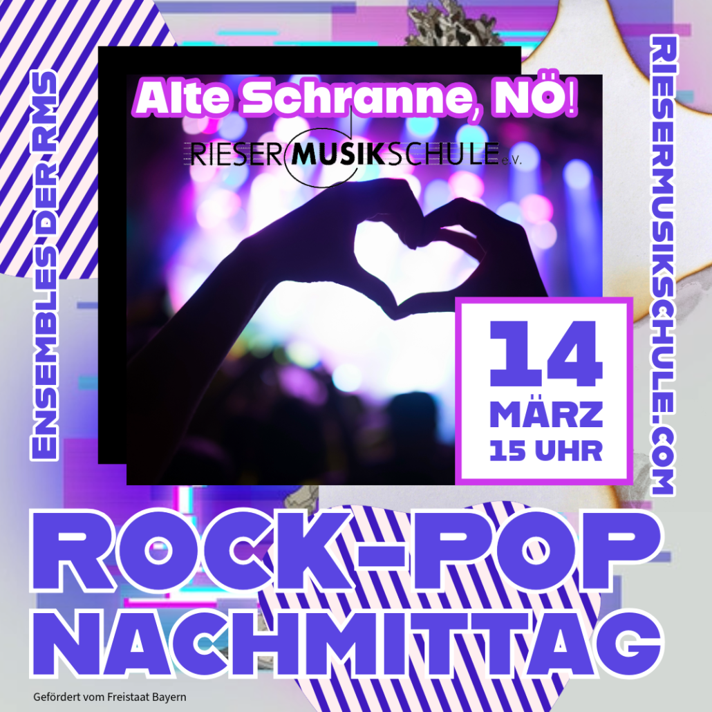 Unser diesjähriger Rock-Pop-Nachmittag steht vor der Tür, am Samstag, 14.März um 15Uhr in der Alten Schranne in Nördlingen. Verschiedene Ensembles der RMS präsentieren ihre Werke und Arrangements. Wieder von der Partie ist nach längerer Pause die RMS Big Band, Neuland betreten auch die Alphörner an diesem Nachmittag. Ein unterhaltsamer Nachmittag erwartet Sie bei Kaffee und Kuchen. Der Eintritt ist frei, Spenden werden erbeten.