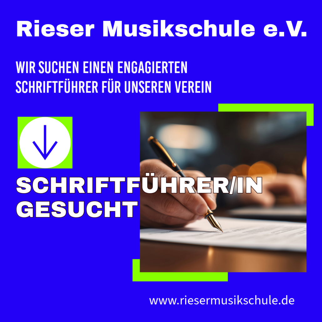 Unser Verein die „Rieser Musikschule e.V.“ sucht einen **Schriftführerin (m/w/d)** 🎶